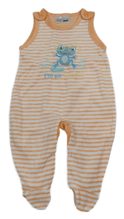 Oranžovo-bílé pruhované sametové dupačky s žábou Ergee