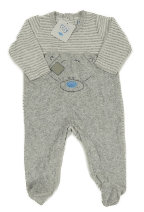 Nové - Sivo-biely zamatový overal s medvěďom a pruhmi