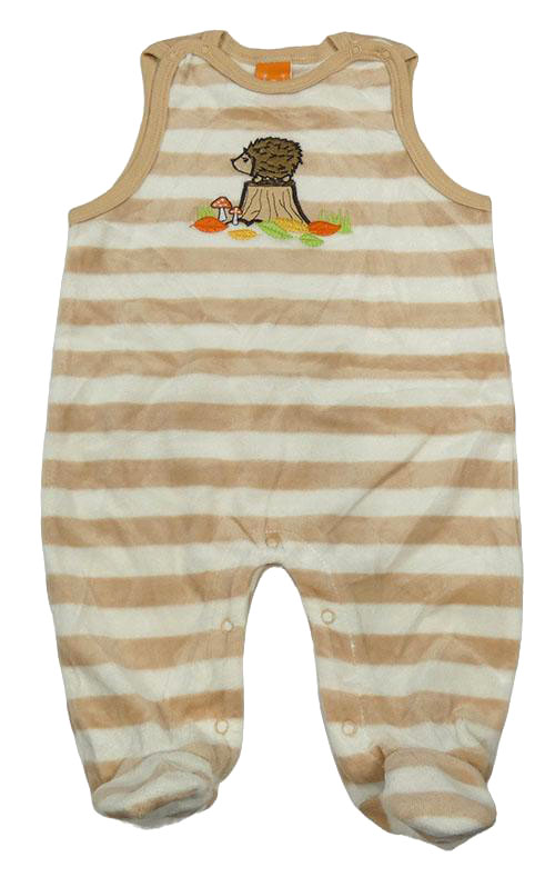Béžovo-smetanové pruhované sametové dupačky s ježkom Pusblu