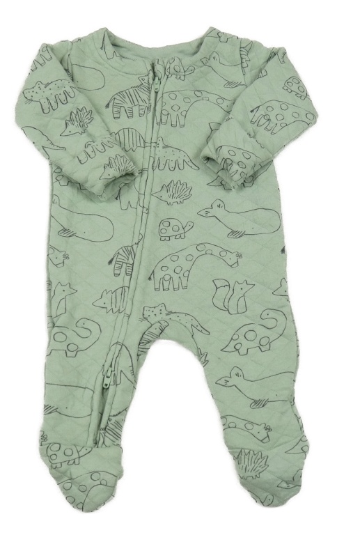 Zelený prešívaný teplákový overal s dinosaurami a zvířaty George
