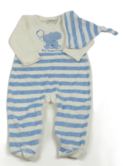 Nové - 2set - Bielo-modrý zamatový overal so slonom a pruhy + čapica