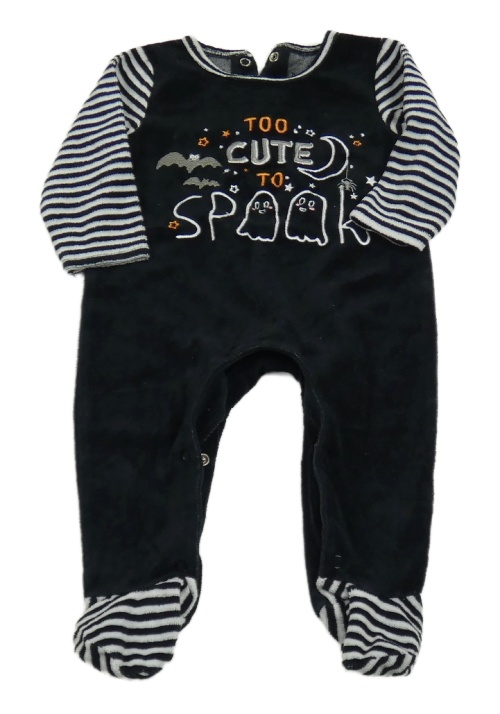 Čierny zamatový overal s duchy a pruhovanymi rukávy
