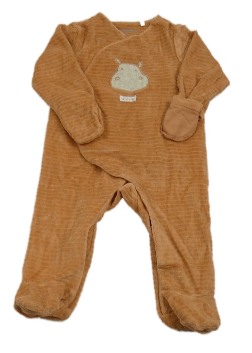 Hnedý rebrovaný zamatový zavinovací overal s hrochem Orchestra