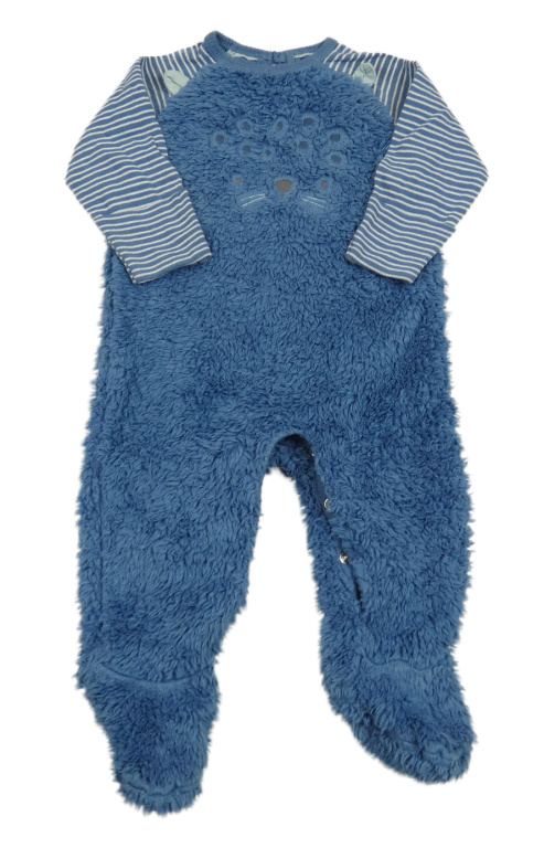 Tmavomodro-pruhovaný chlupato/bavlněný overal s ňufáčikom Mothercare