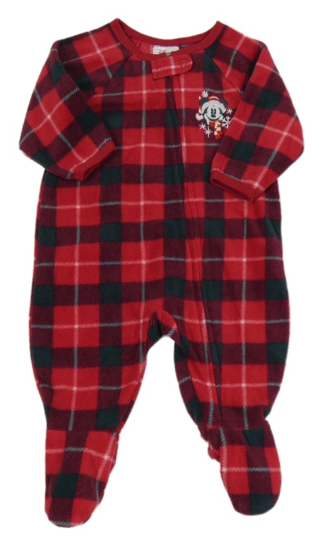 Červeno-čierno-biely kockovaný fleecový overal s Mickeym Disney