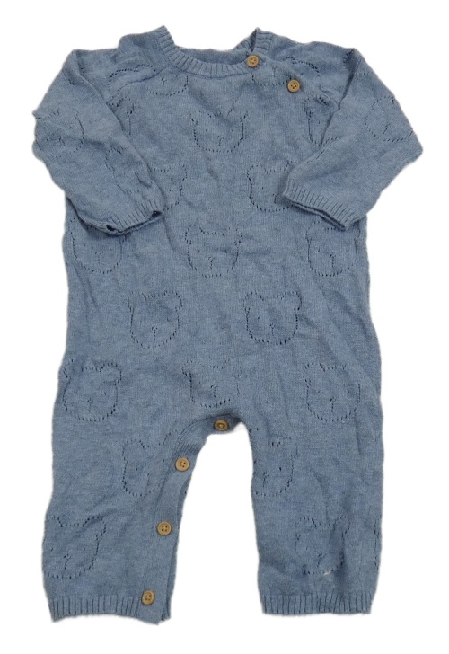 Modrý melírovaný pletený overal s perforovanými medveďmi George