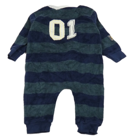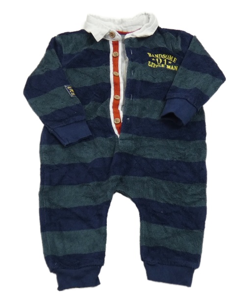 Tmavomodro-sivý pruhovaný froté overal s nápisom George