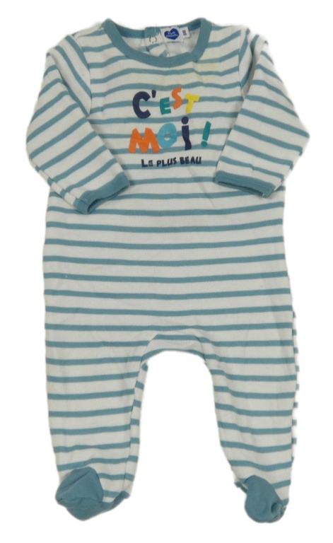 Bielo-modrý pruhovaný zateplený overal s nápisom