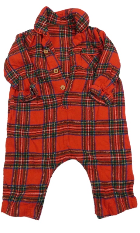 Červeno-zelený kockovaný pyžamový overal s golierikom Tu