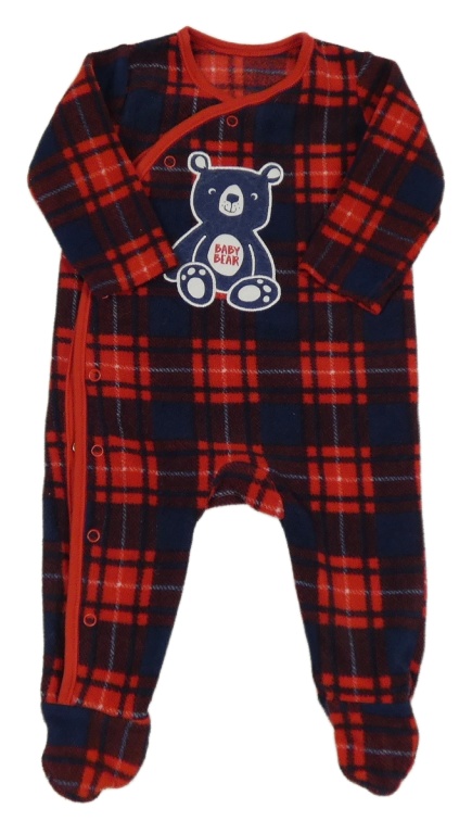 Tmavomodro-červený fleecový kockovaný overal s medvedíkom Nutmeg