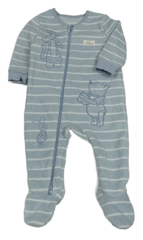 Světlemodrošedo-biely pruhovaný fleecový overal s Pú s kamarády George