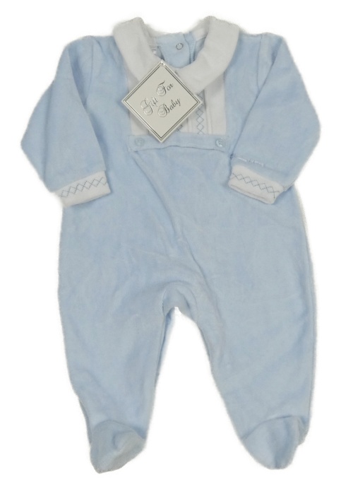 Nové - Světlemodro-biely zamatový overal s golierikom