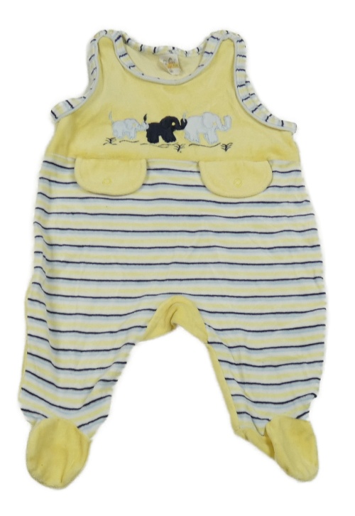 Žluto-bílo-modré pruhované sametové dupačky so slonmi