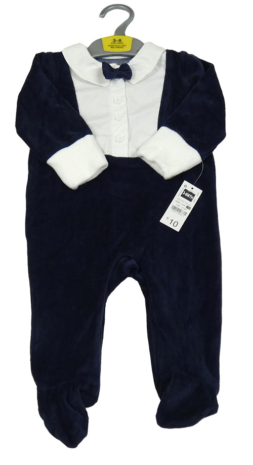 Nové - Tmavomodro-biely zamatový overal s golierikom a motýlkom Dunnes