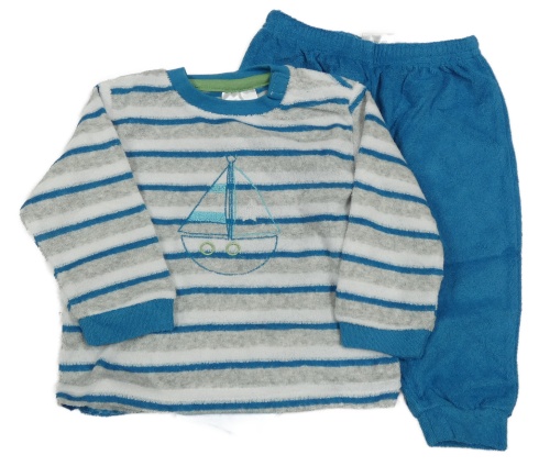 Sivo-bielo-petrolejové pruhované zamatové pyžama s loďkou Impidimpi