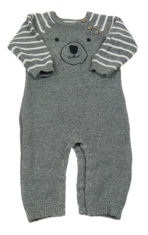 Sivý pletený overal s pruhovanymi rukávy a ňufáčikom Topomini