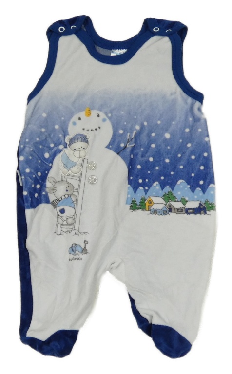 Bílo-tmavomodro-safírové sametové dupačky s medvedíkom a zajačikom a sněhuláčkem