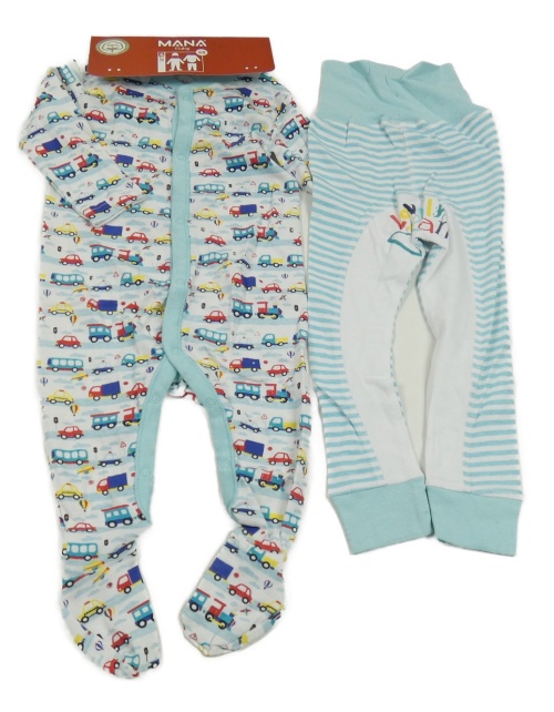 Nové - 2set - Bielo-svetlomodrý overal s auty + pruhované tepláky