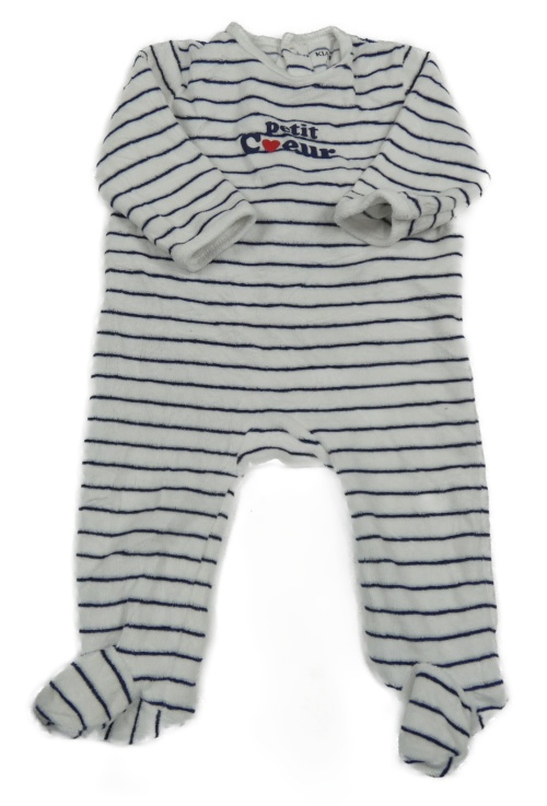 Bielo-tmavomodrý pruhovaný zamatový overal s nápisom kiabi