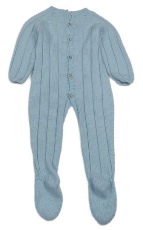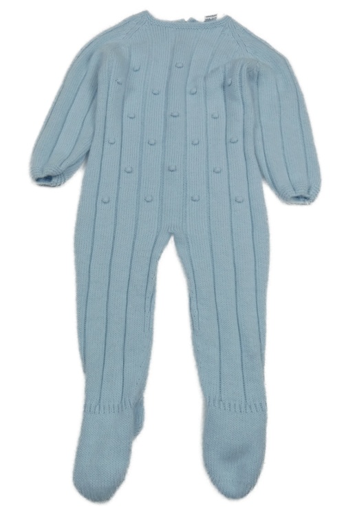 Svetlomodrý chlpatý rebrovaný pletený overal s 3D bambulemi