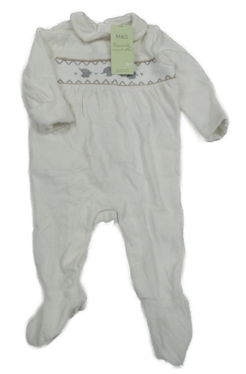 Nové - Biely zamatový overal so slonmi a golierikom M&S