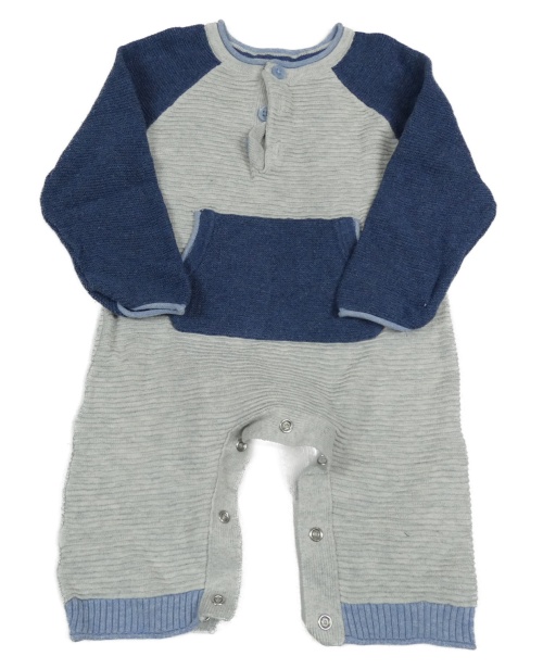 Svetlošedá -tmavomodrý melírovaný rebrovaný pletený overal s vreckom Tu
