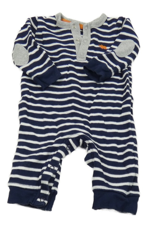 Tmavomodro-bielo-sivý pruhovaný pletený overal s nosorožcem M&S