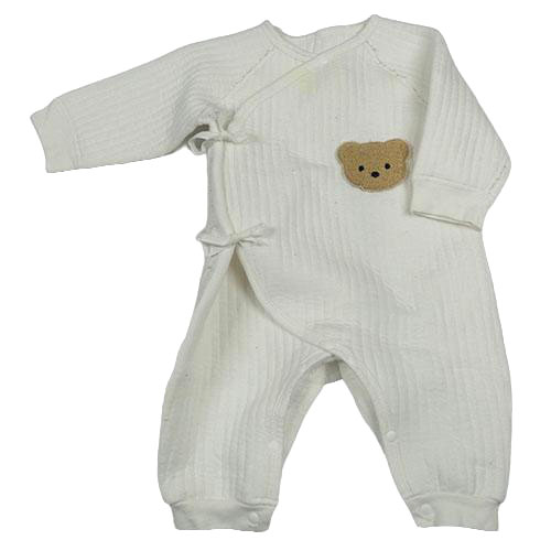 Biely prešívaný zateplený zavinovací overal s medvěďom