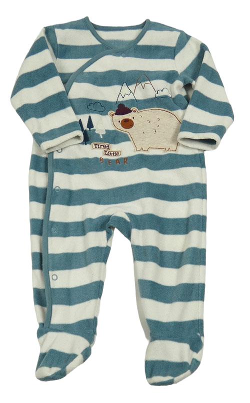 Zeleno-biely pruhovaný fleecový overal s medvěďom George