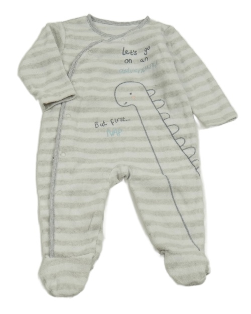 Bielo-sivý pruhovaný fleecový overal s dinem George