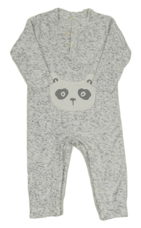 Bielo-sivý žíhaný zamatový overal s pandou Benetton