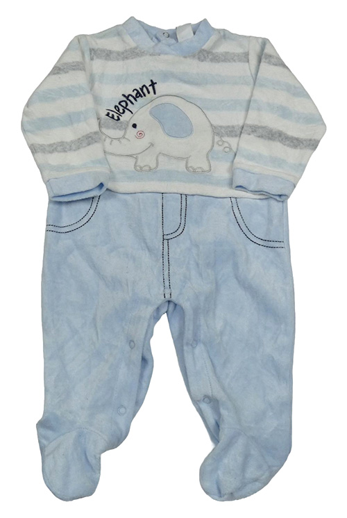 Světlemodro-bielo-sivý zamatový overal so slonom a pruhmi