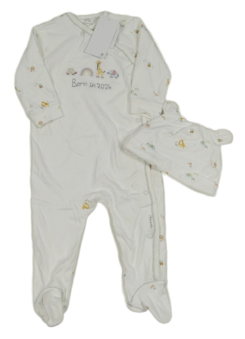 Nové - 2 set - biely overal s obrázkami a nápisem + čapica Next
