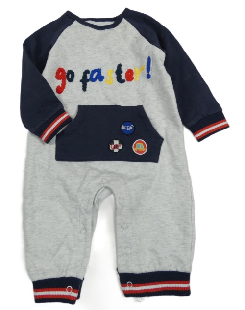 Sivo-tmavomodrý teplákový overal s klokankou a nápisom