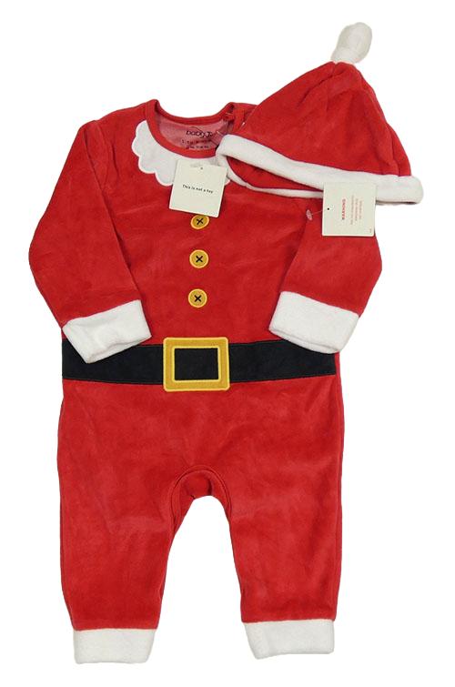 Nové - 2set - Červený sametový overal + čepice - Santa Tu