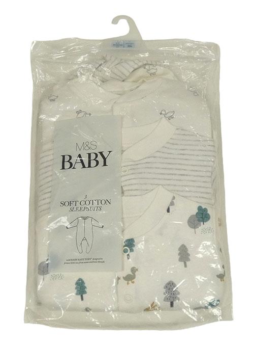 Nové - 3x overal - bílý s kachnami + bílo-šedý pruhovaný + bílý so stromky M&S