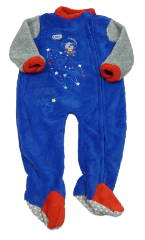 Kobaltově modro-sivý chlpatý overal s raketou a psíkom