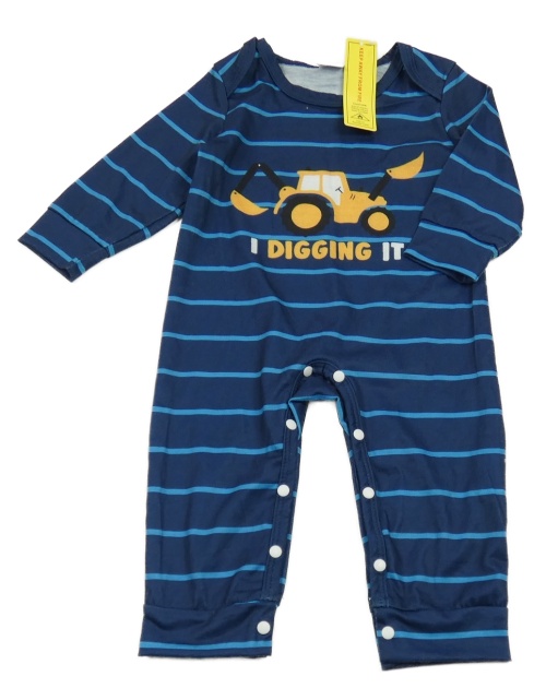 Nové - Tmavmodro-modrý pruhovaný overal s traktorom