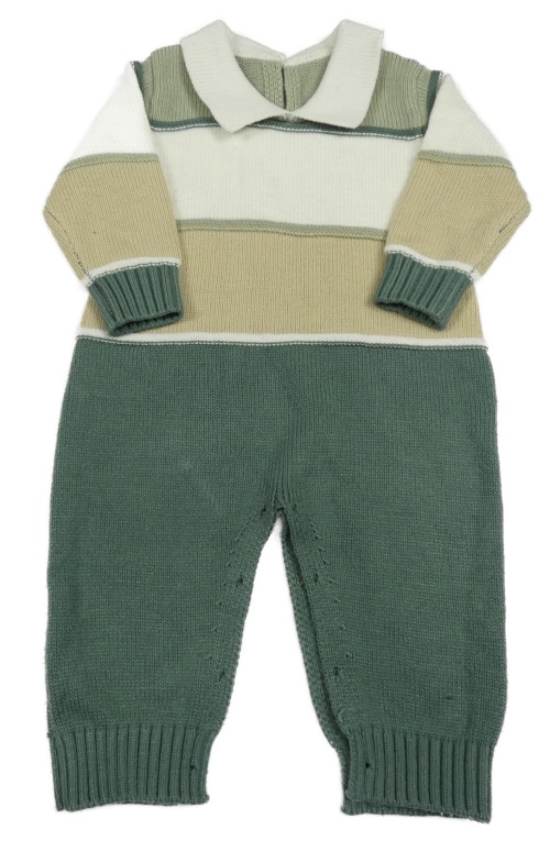 Kaki-béžovo-biely pletený overal s golierikom SHEIN