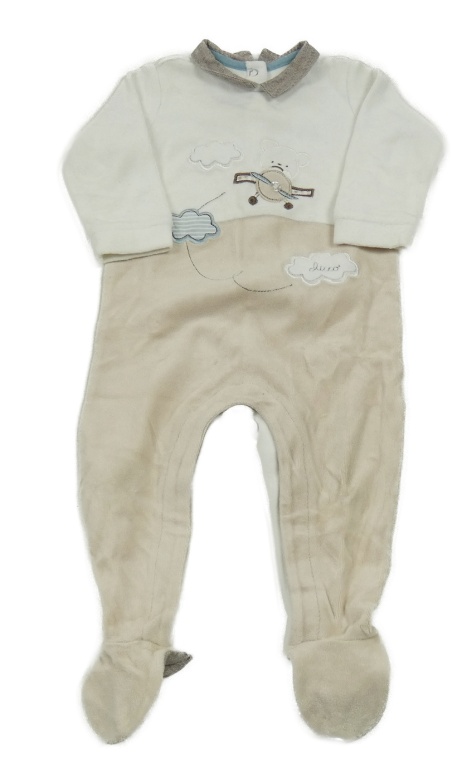 Bielo-béžový zamatový overal s medvedíkom Chicco