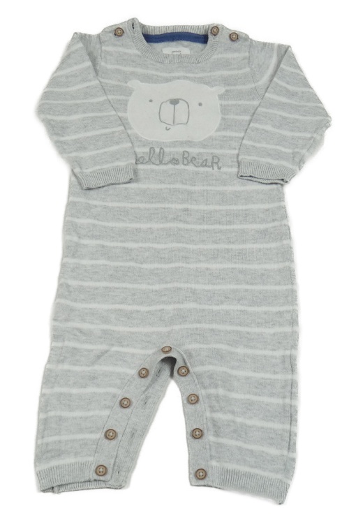 Sivo-biely pruhovaný pletený overal s medvedíkom C&A