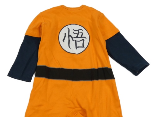 Oranžovo-tmavomodrý overal s potlačou a opaskom