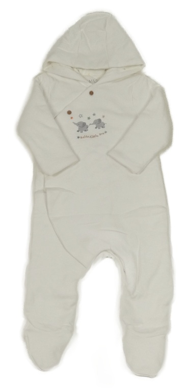 Biely zateplený overal so slonmi a kapucňou M&S