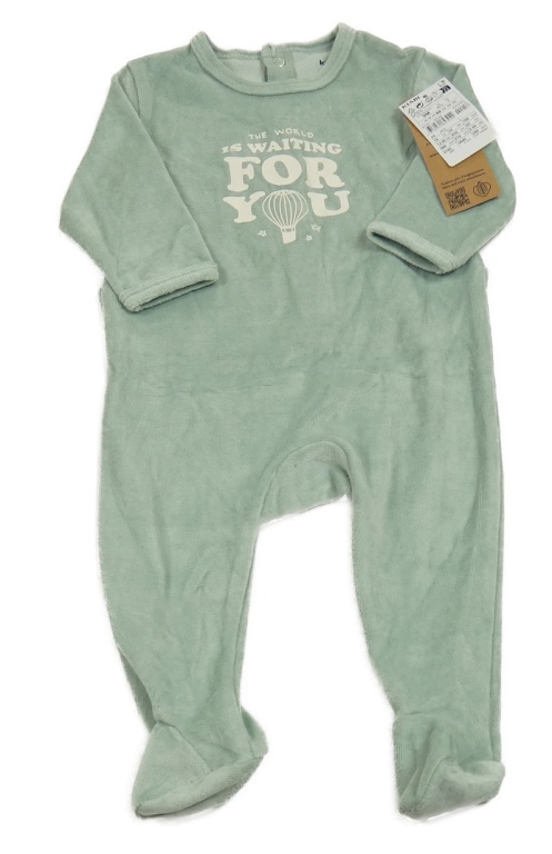 Nové - mentolovošedý zamatový overal s nápismi a balonem KIABI