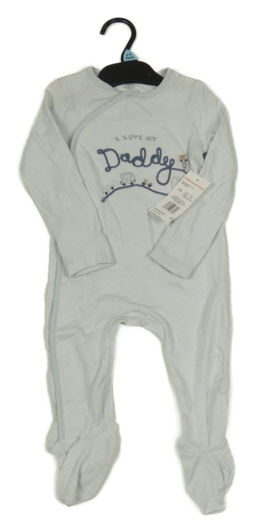 Nové - Světlemodro-biely pruhovaný overal s obrázkami a nápisom F&F