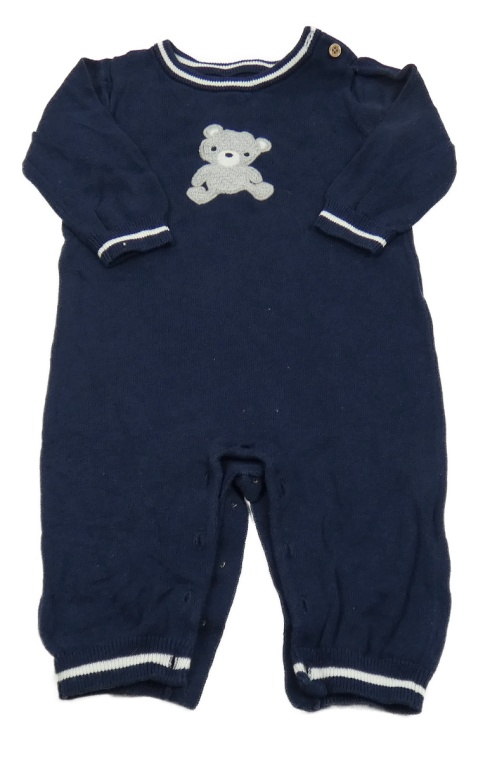 Tmavomodro-biely pletený overal s medvedíkom Nutmeg