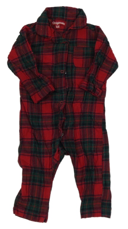 Červeno-zeleno-čierny kockovaný flanelový overal