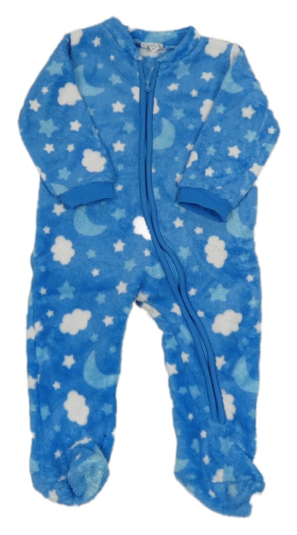 Modrý plyšový overal s mráčikmi a mesiacmi