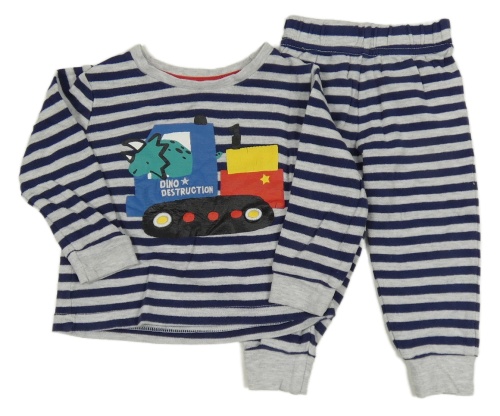 Sivo-tmavomodré pruhované pyžama s buldozerem s dinosaurom V by Very