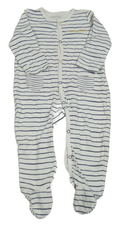 Bielo-tmavomodrý pruhovaný overal s nápisom Inextenso